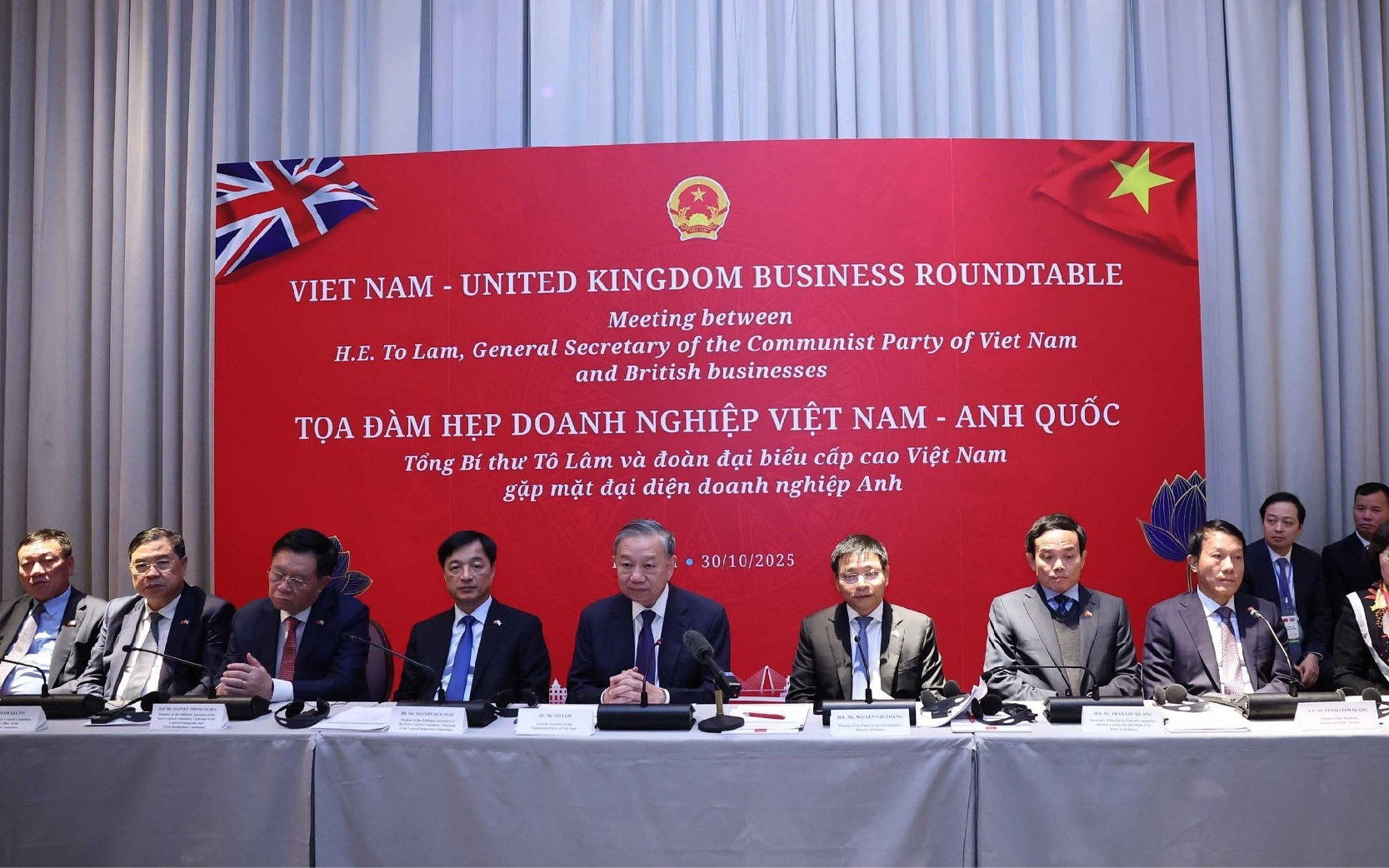 Ngày 30/10/2025, tại Khách sạn Corinthia (London, Vương quốc Anh), Tọa đàm Doanh nghiệp Việt Nam – Anh Quốc (Viet Nam – United Kingdom Business Roundtable) đã diễn ra trong khuôn khổ chuyến thăm chính thức của Tổng Bí thư Ban Chấp hành Trung ương Đảng Cộng sản Việt Nam Tô Lâm tới Vương quốc Liên hiệp Anh và Bắc Ireland.